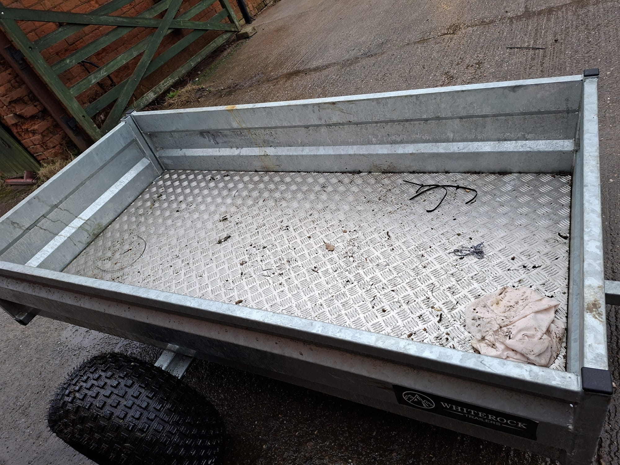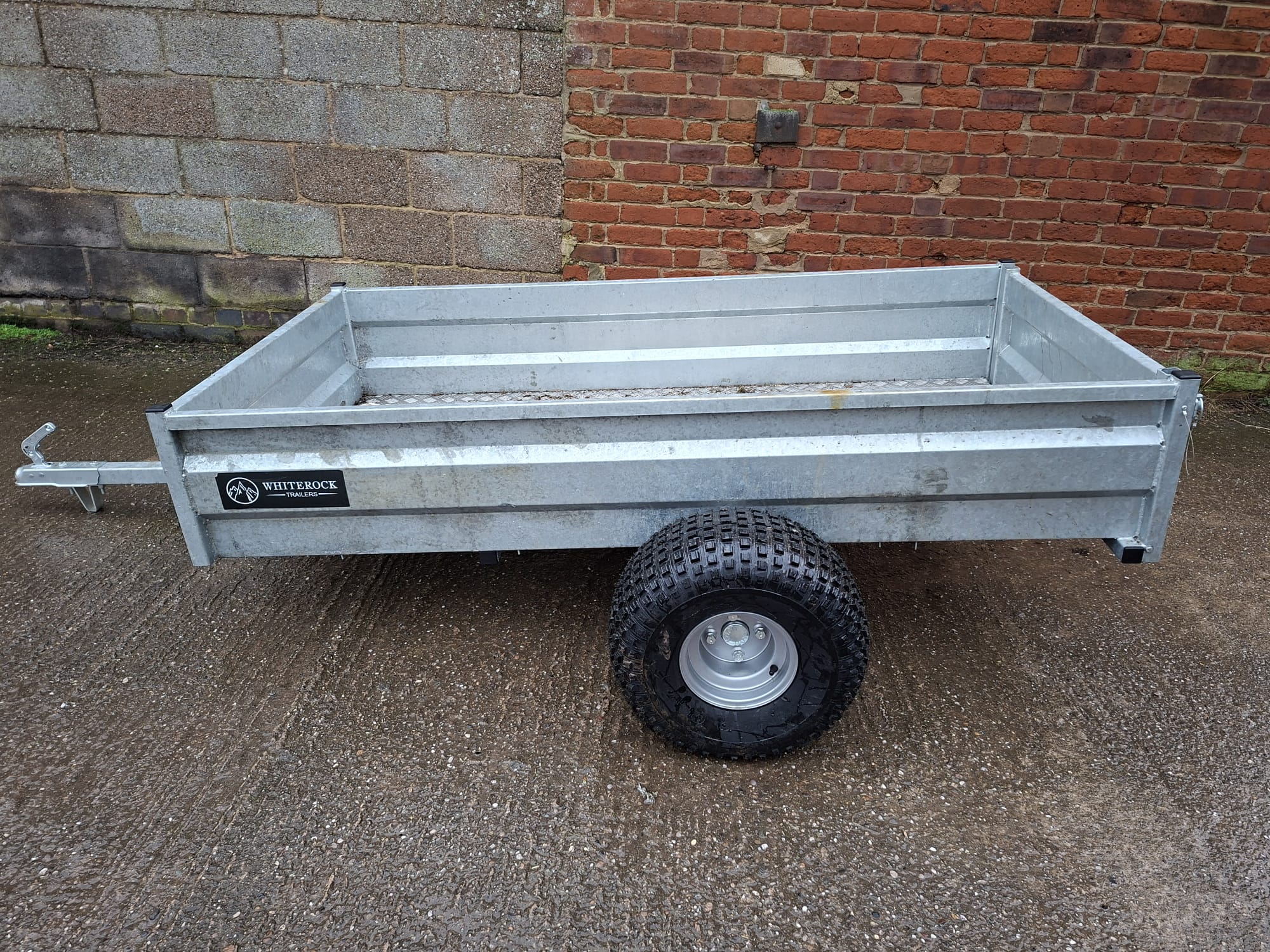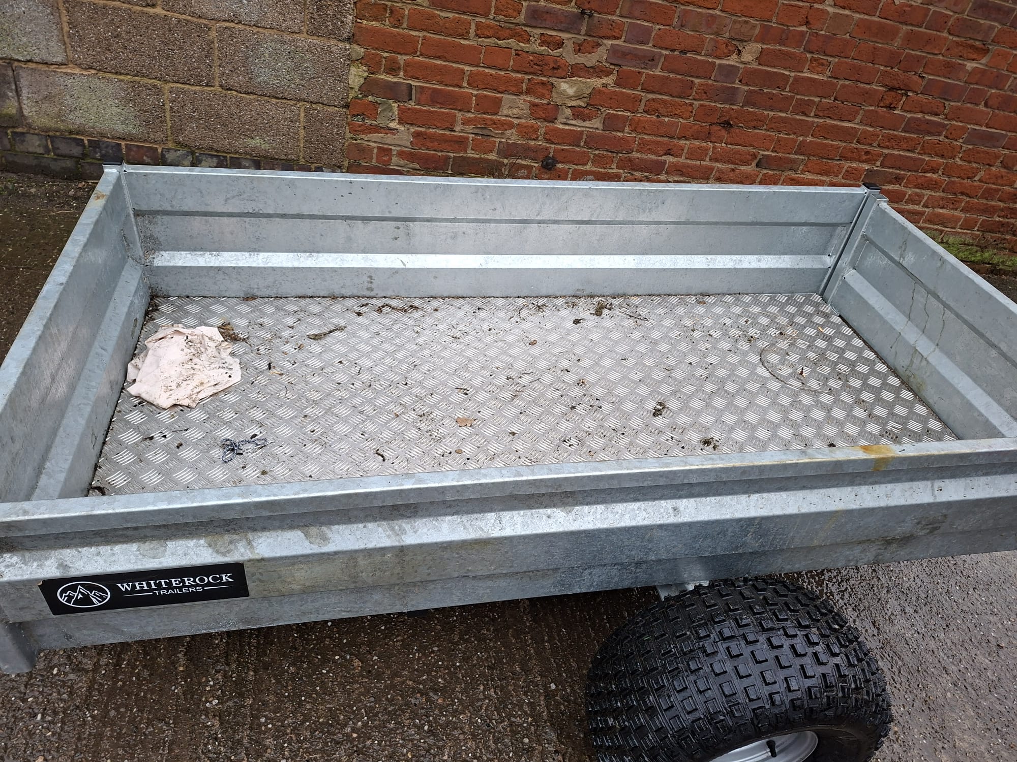 White rock quad trailer, with flotation tyres. Internal width 100cm, internal length 200cm