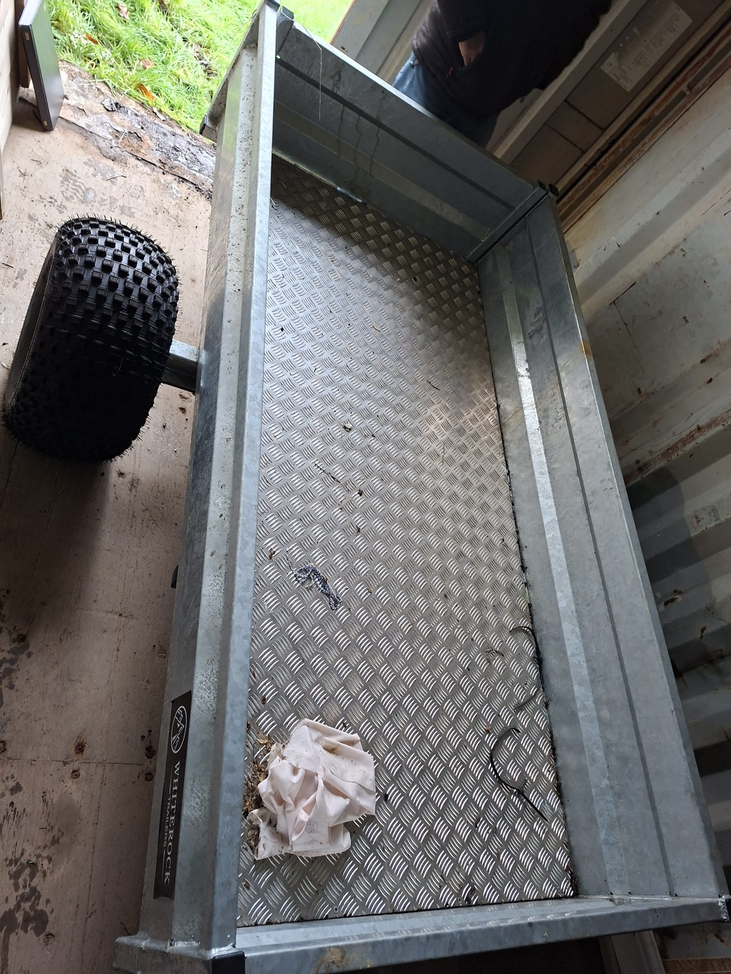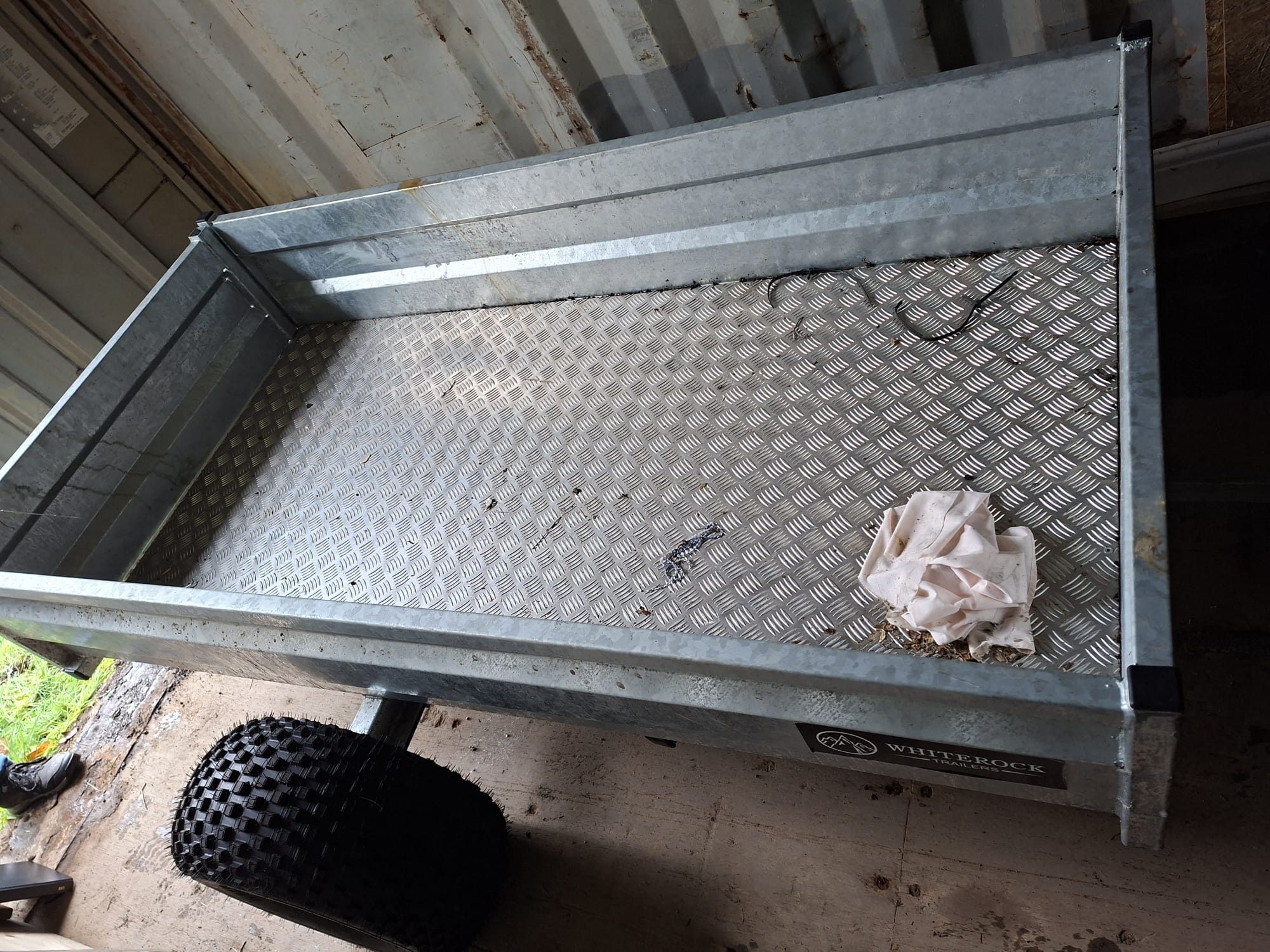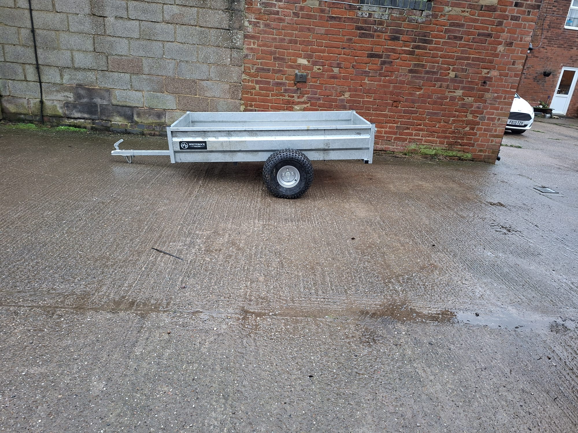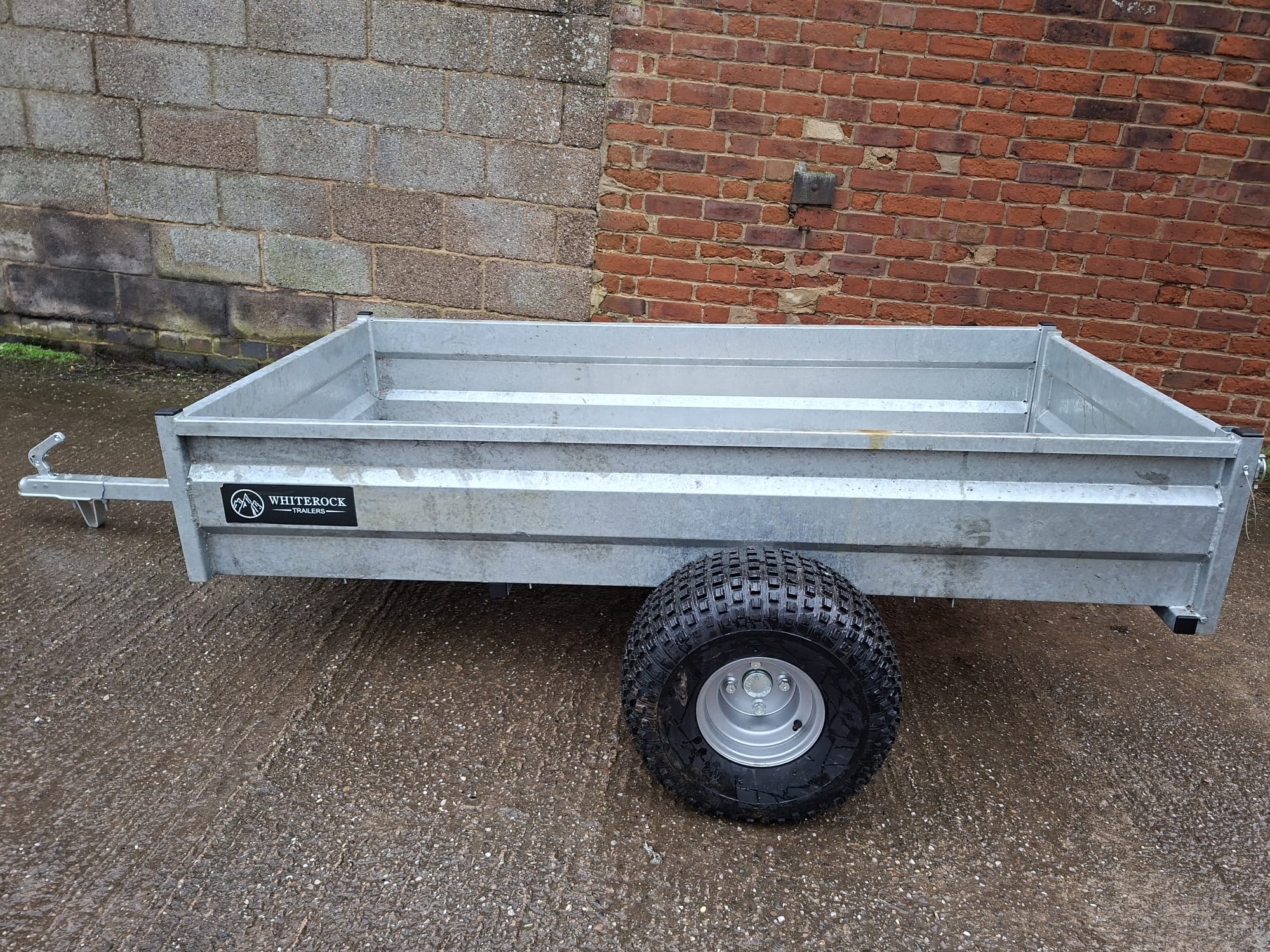 White rock quad trailer, with flotation tyres. Internal width 100cm, internal length 200cm
